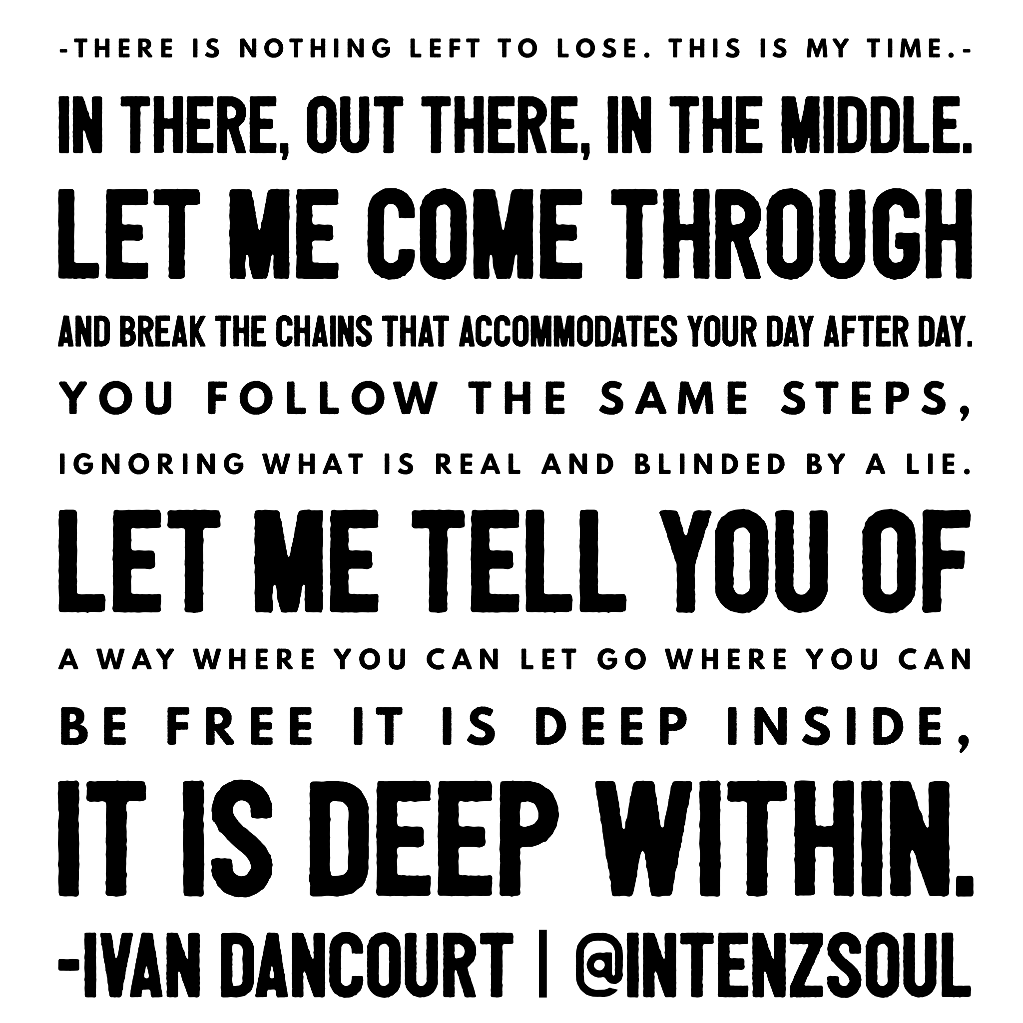 breakthroughdeep withinPosted on July 13, 2016by Ivan Dancourt deep within – written by Ivan Dancourt – @intenzsoulbreak the chains that accommodates your day after day.